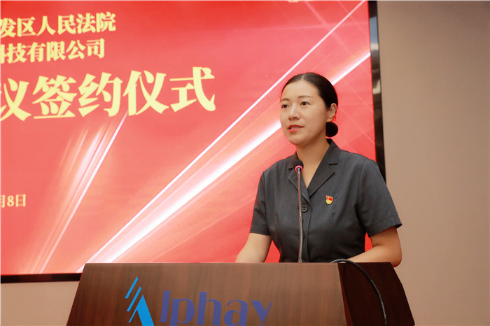 吴亚峰院长在讲话中表示开发区法院会依法履职,保障安惠公司的合法权益,为公司的蓬勃发展创造优质的司法环境,提供高质量的司法服务和保障。她希望在今后的共建工作中,双方能强化合作资源共享,强化交流共同学习,强化互动加深友谊,强化党建带动团建,一起以高质量的党建引领高质量的发展。