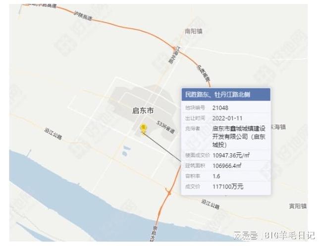 1月11日,南通启东市出让1宗宅地,由启东城投以11.7亿底价摘牌,楼面价10947元/㎡。